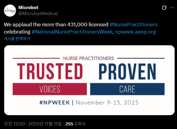 11월 11일 오늘, Microbot Medical(MBOT)이 X(트위터)에 올린 짧은 게시글 하나가 눈에 들어왔다.